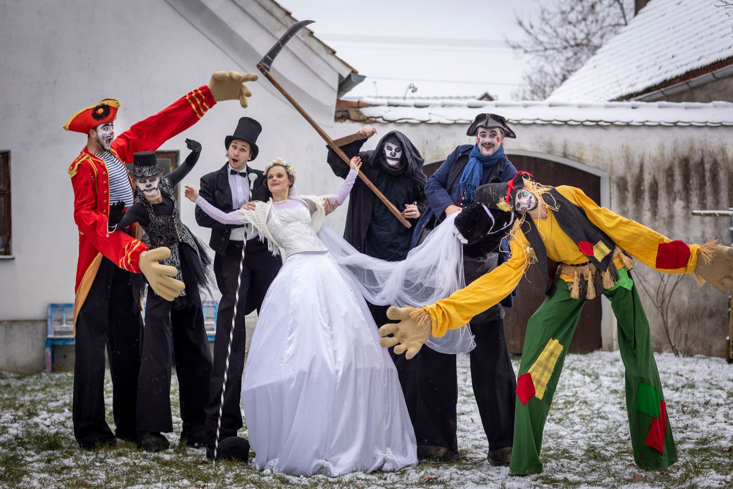 Chůdaři ve vašem reji masek nesmí chybět. Udělejte z vašich slavností Masopust s velkým „M“.